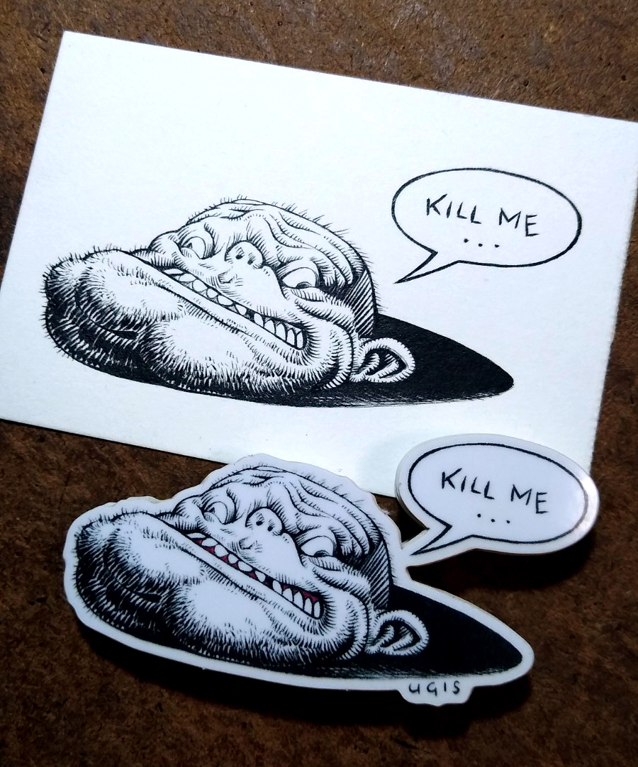 Based on an original drawing for my How to Draw Ugly Men tutorial series. It's only a wee bit smaller than the doodle, see pics for reference.